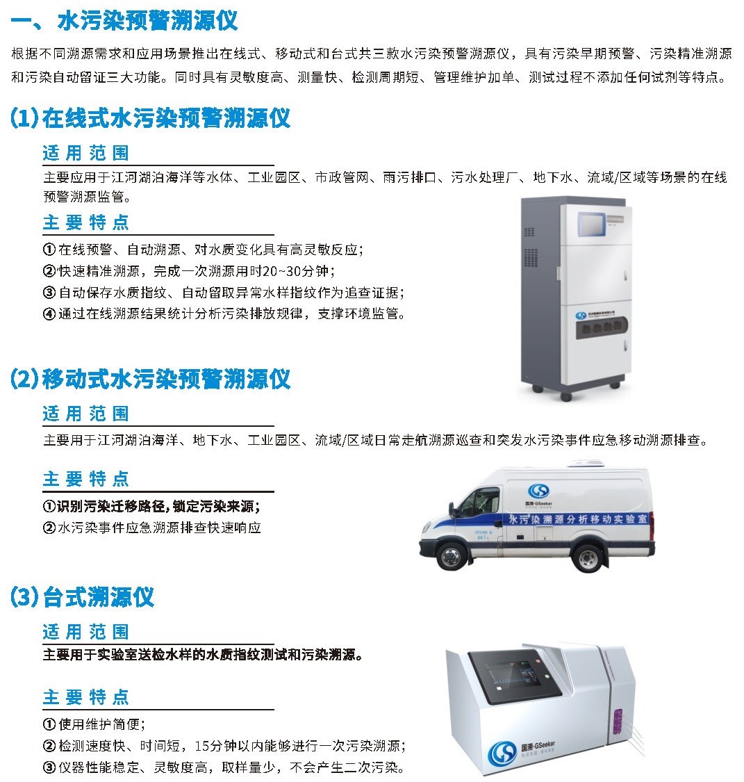 系列水污染預(yù)警溯源儀(在線式、臺式、移動式)
