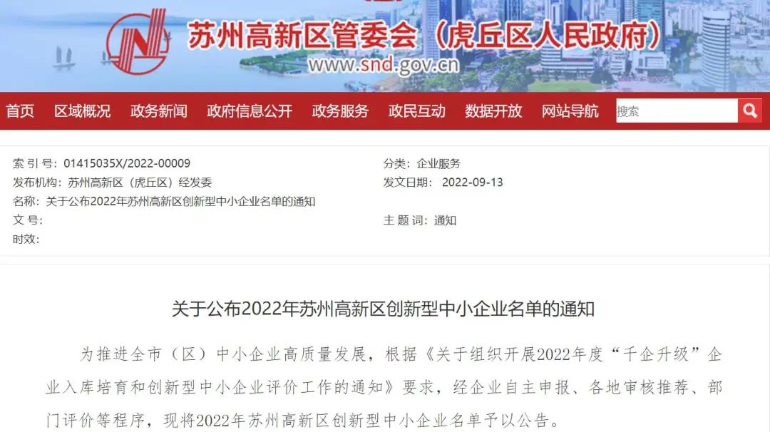近日,蘇州高新區(qū)經發(fā)委公布了“2022年蘇州高新區(qū)創(chuàng)新型中小企業(yè)”名單,蘇州國溯科技有限公司成功入選。