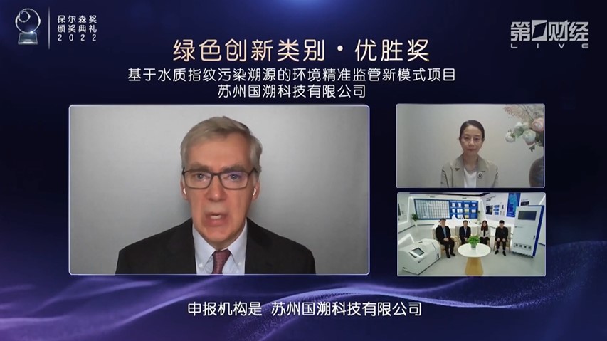 2022年12月15日,由保爾森基金會(huì)與清華大學(xué)聯(lián)合主辦的2022年“保爾森可持續(xù)發(fā)展獎(jiǎng)”(簡稱:保爾森獎(jiǎng))頒獎(jiǎng)典禮在線隆重舉行。國溯科技申報(bào)的“基于水質(zhì)指紋污染溯源的環(huán)境精準(zhǔn)監(jiān)管新模式”項(xiàng)目脫穎而出,位列三甲,斬獲“綠色創(chuàng)新”類別優(yōu)勝獎(jiǎng),被表彰其“通過創(chuàng)新的技術(shù)和模式,以智能化和戰(zhàn)略性的數(shù)據(jù)應(yīng)用和分析而產(chǎn)生的變革性影響力”。